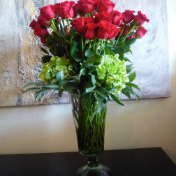 The flowers were perfect and lovely. I requested a simple clear glass container, and that was what was used. The owner delivered the flowers personally, and the recipient was thrilled with them.